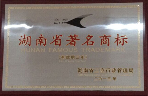 公司認定為2013年湖南省著名商標